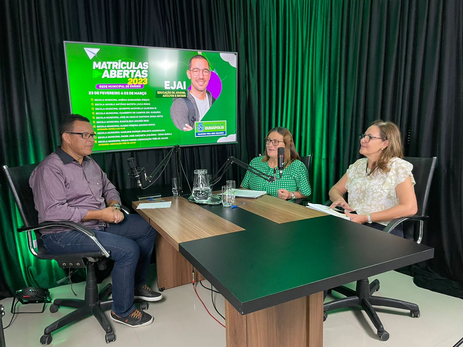 O quinto episódio do “Eunápolis Pod+”, o podcast oficial do Município, abordou nesta quinta-feira (16) o planejamento da educação e a abertura das matrículas da rede pública municipal de ensino para o ano letivo 2023. Os convidados do programa, que é apresentado por Washington Teixeira, foram a secretária de Educação, Telma Andrade, subsecretário da pasta, Gabriel Saulo, e a gestora do Núcleo Pedagógico, Cláudia Berdague.