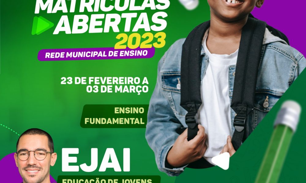 A Prefeitura de Eunápolis, por meio da Secretaria Municipal de Educação, informa que começa nesta quinta-feira (23) o período de matrículas do ensino fundamental (regular e EJAI) para o ano letivo 2023.
