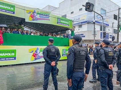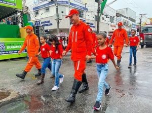 Nessa emocionante celebração, as forças de segurança de Eunápolis, incluindo a Guarda Civil Municipal, a Polícia Rodoviária Federal, a 7ª Companhia Independente da Polícia Militar de Eunápolis, o Samu e o Corpo de Bombeiros, desfilaram com honra, recebendo o merecido reconhecimento e a gratidão da comunidade.