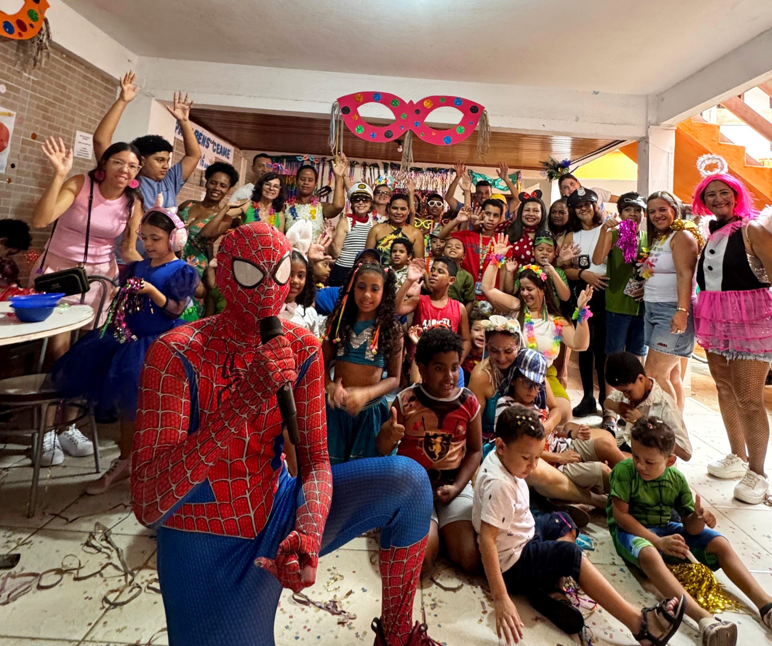 A alegria invadiu os espaços do Ceame (Centro de Educação Inclusiva e Atendimento Especializado), na manhã de 13/02, quando alunos, familiares e as equipes de trabalho vestiram suas fantasias e caíram na folia. Princesas, super heróis, fadas, bichinhos e bailarinas dançaram e pularam o Carnaval da Inclusão, ao som de Marcos Val, que animou a plateia cantando marchinhas e músicas que fazem sucesso pelo país.