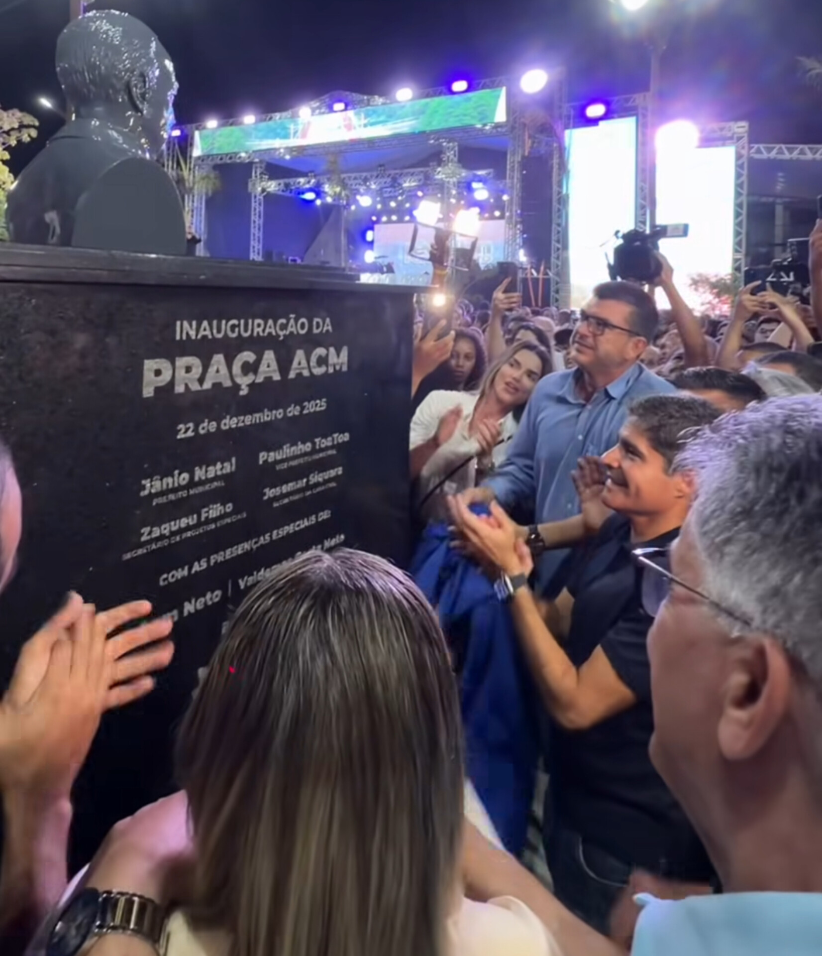 Inauguração da nova Praça ACM, com a presença de ACM Neto e da cúpula do PL, reuniu lideranças regionais em Porto Seguro. _ Imagem: reprodução Secom