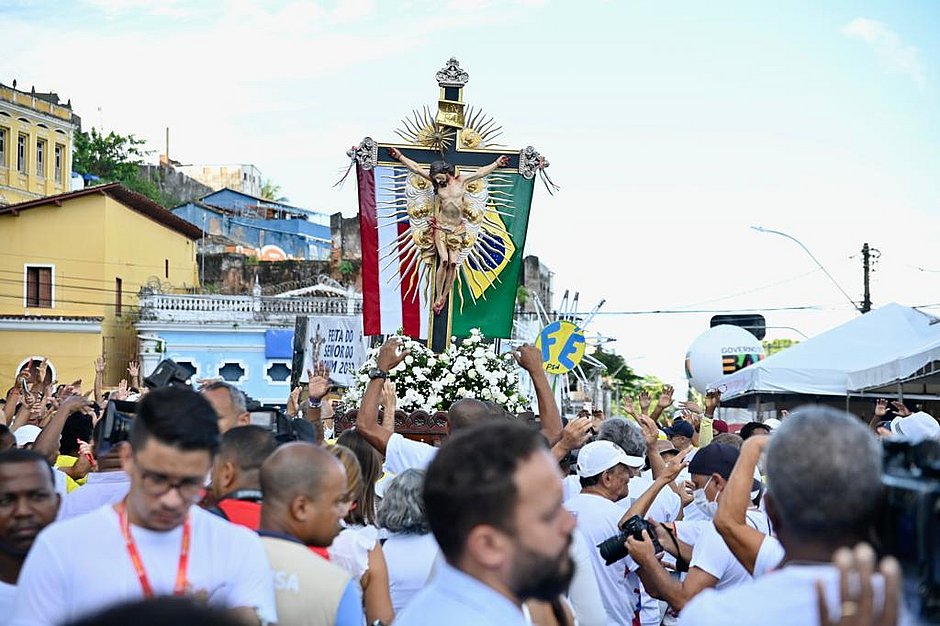 A imagem peregrina do Senhor do Bonfim já deixou a igreja para dar início à Lavagem de Corpo e Alma, organizada pela irmandade do Bonfim. O hino do Bonfim, tema da festa católica deste ano, está sendo tocado. Muitas pessoas se emocionam com a canção.