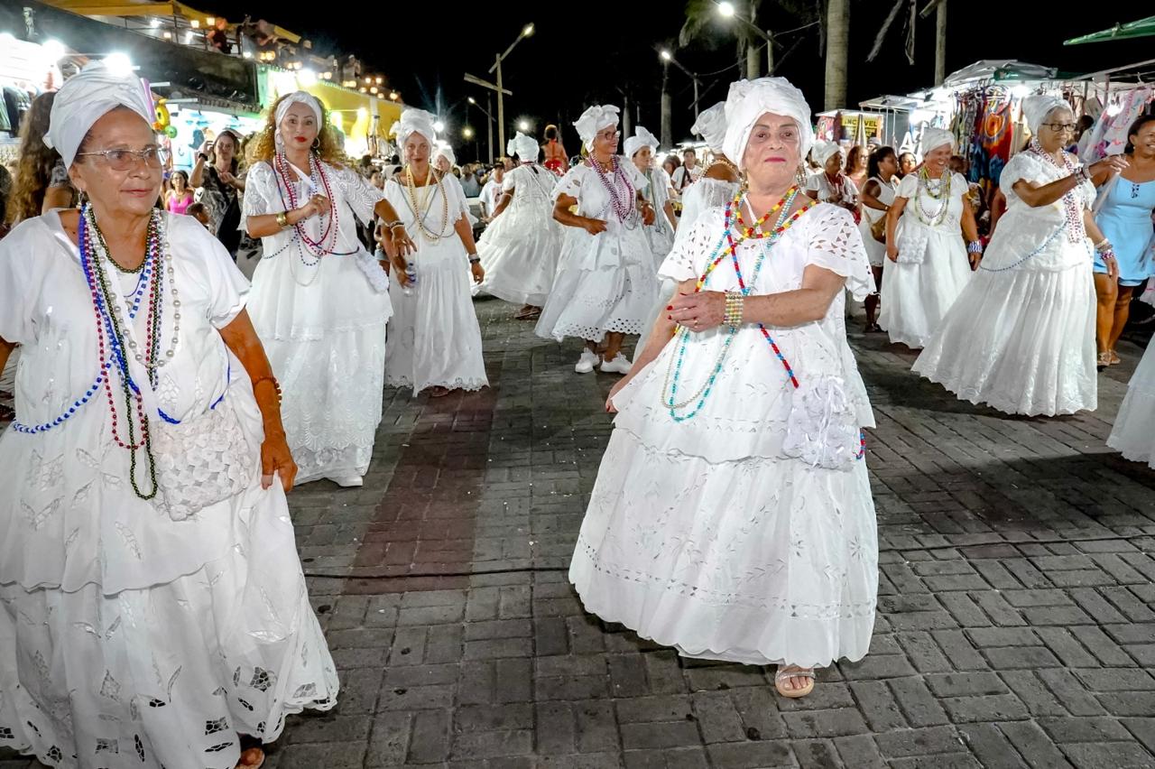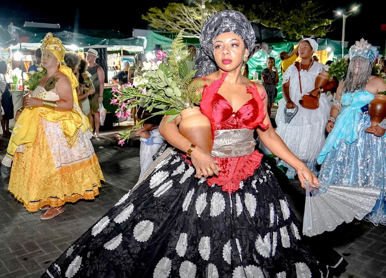 A concentração de uma média de 500 pessoas ganhou o fim da tarde na Praça do Relógio (Pier), com saída às 19h., trazendo o tema “As Yabás”, o afoxé homenageou as orixás femininas Yansã, Yemanjá, Oxum, Nanã, Obá e Ewá, num cortejo de ancestralidade, fé e resistência. Teve Banda AfroBraz, Trio Nari Farias, Jorge Lemes, Kaito Odara e a presença marcante do Ilê Axé Kaja d’Omim Orum, Terreiro de Umbanda Ogum Beira Mar e Caboclo Sete Flechas, além das baianas do Grupo da Melhor Idade Alegria de Viver e do Projeto Afro Ambiental.