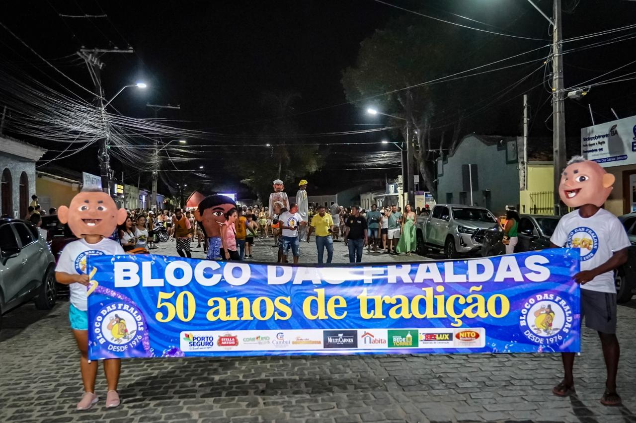 Na sede, Das Fraldas celebrou 50 anos de irreverência com a Charanga 2 de Julho, saindo do Centro de Cultura e contagiando o percurso com uma multidão sem fim de foliões. Depois, Ninguém Segura Essas Babás veio no minitrio com a Charanga Bamups e Karine Ramos, desde a Casa da Lenha. Os Meninos de Vó homenagearam o personagem Chaves ao som de Saan Vagner, desde a Praça do Dendê. E a noite fechou com o Laele, com Gil Lima, desde a Tarifa dos Pescadores pondo a folia para pipocar com quase 700 pessoas.