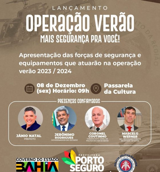 Foto” divulgação Nesta sexta-feira, 08/12, a Operação Verão 2023/2024 será lançada em Porto Seguro, na Passarela da Cultura, às 9h,...
