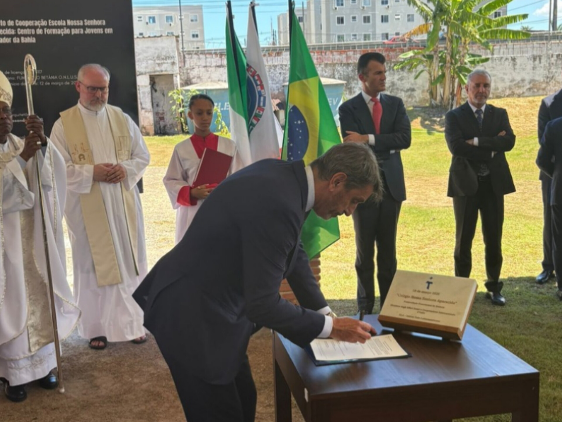 A capital baiana ganhará um novo equipamento educacional voltado à inclusão social e ao ensino gratuito. O embaixador da Itália no Brasil, Alessandro Cortese, participou nesta quinta-feira (19) do lançamento da pedra fundamental da futura Escola Nossa Senhora Aparecida, que será construída no bairro de São Cristóvão, em Salvador. A iniciativa é conduzida pela Fraternidade Franciscana de Betânia e tem financiamento da Cooperação Italiana, ligada à Farnesina, o Ministério das Relações Exteriores da Itália.