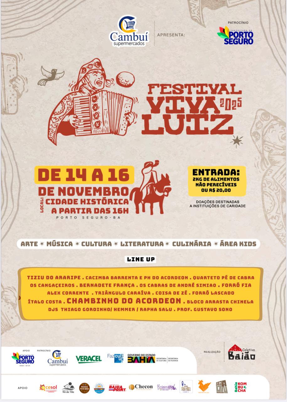 Porto Seguro viveu um fim de semana de pura brasilidade em pleno.mês de novembro. Nos dias 14, 15 e 16, a Cidade Histórica ganhou novos sons e cores com o Festival Viva Luiz 2025, uma homenagem à herança de Luiz Gonzaga e ao irresistível ritmo do forró pé de serra.