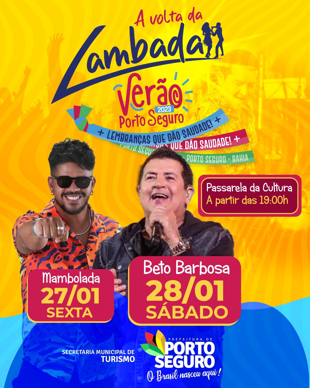 A Campanha de Verão ‘Lembranças Que Dão Saudade’ preparou um grande show com a Banda Mambolada, na Passarela da Cultura, na noite de sexta-feira, 27. Para o sábado, 28, é Beto Barbosa que vai colocar o povo pra dançar lambada, na pista do largo de eventos.