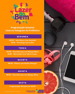 O Programa Lazer do Bem, desenvolvido pela Secretaria Municipal de Esporte e Lazer, leva o esporte e orientações para qualidade de vida à comunidade de forma on-line, exibidos pela página do Instagram da Prefeitura de Porto Seguro.
