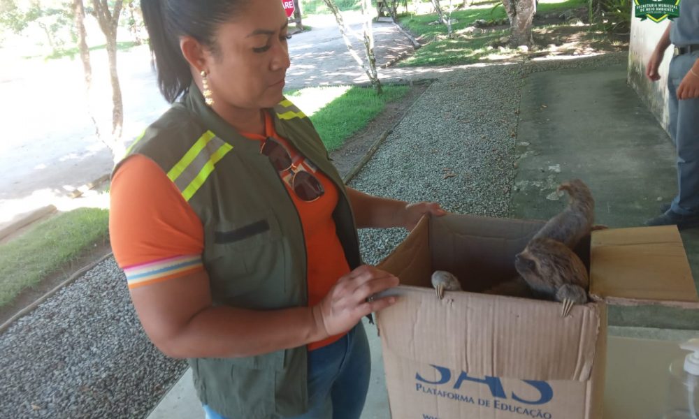 Após solicitação através do disque denúncia da Secretaria Municipal de Meio Ambiente e Causa Animal (Semac), nesta última quinta-feira, 30, a equipe de fiscalização resgatou mais um filhote de bicho-preguiça.