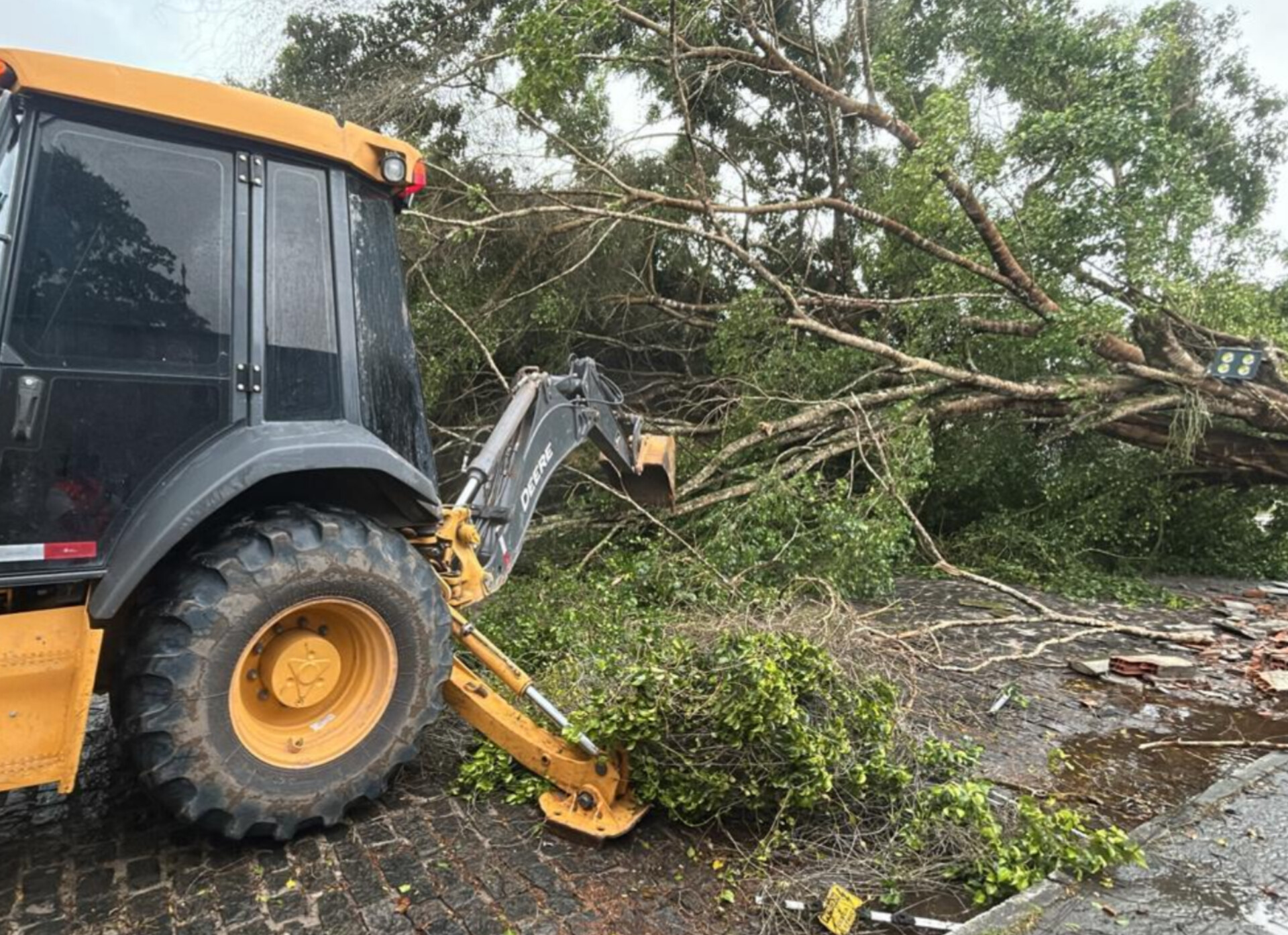 Em sistema de mutirão, as equipes atuaram na retirada de árvores, postes e placas caídos, além da limpeza de vias e apoio às áreas afetadas. O trabalho foi feito com máquinas e homens e se concentrou principalmente na Orla Norte, Centro, Frei Calixto e Arraial d’Ajuda, mas também chegou a outras localidades.
