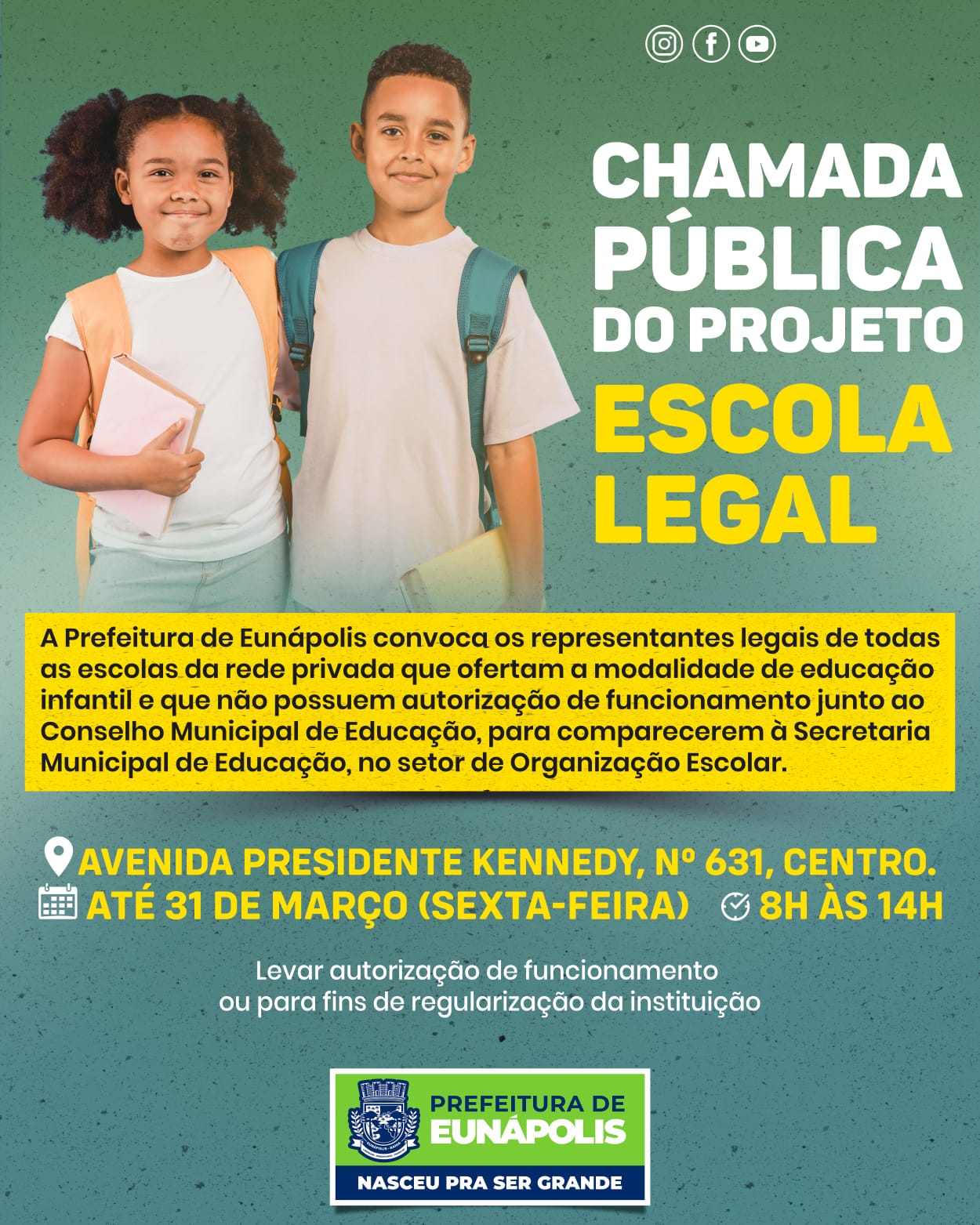Eunápolis: Secretaria de Educação convoca responsáveis por escolas particulares a regularizar funcionamento até 31 de março